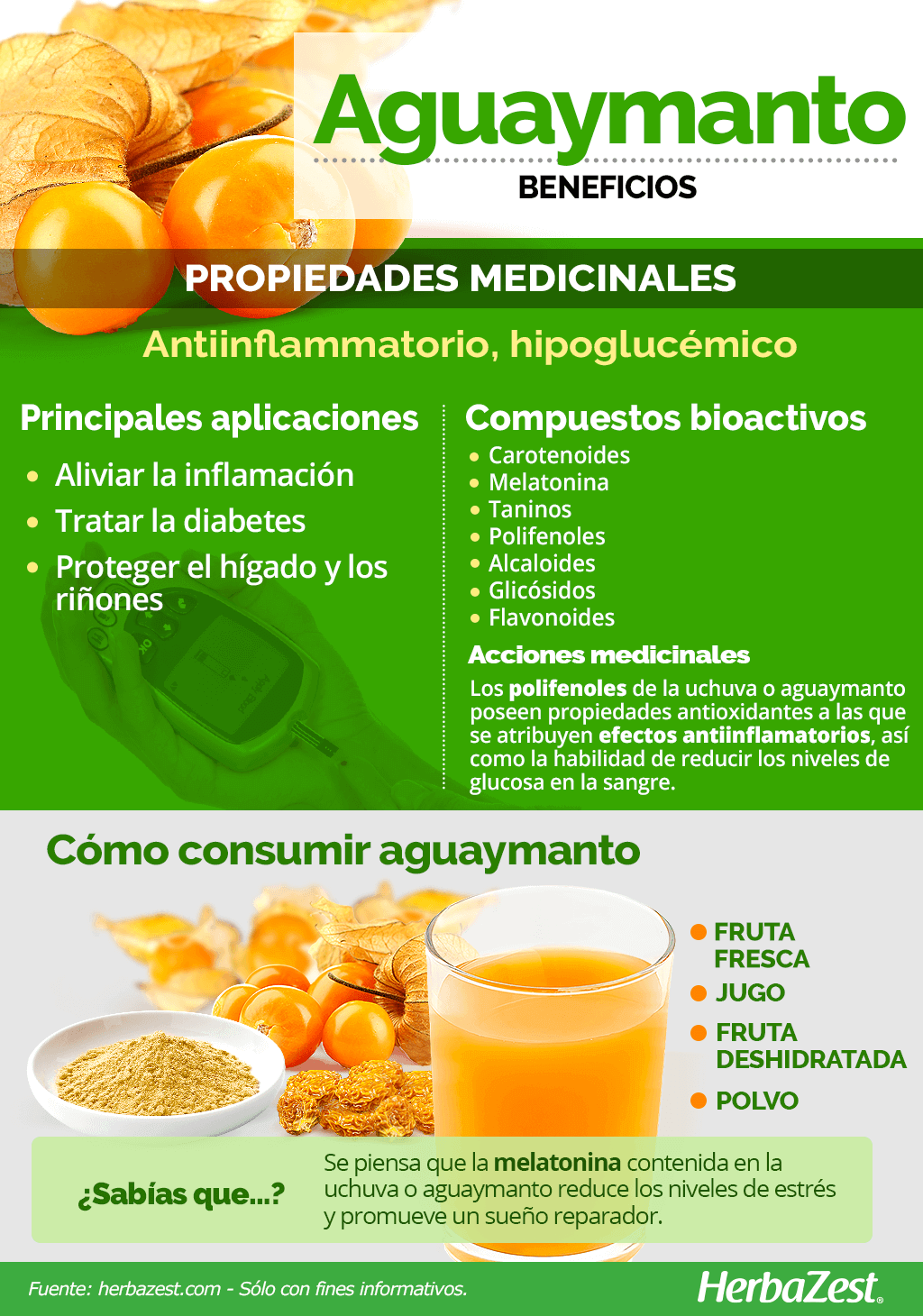 Tratar la diabetes. Las investigaciones preliminares muestran que el aguaymanto puede ayudar a regular los niveles de glucosa en la sangre.1