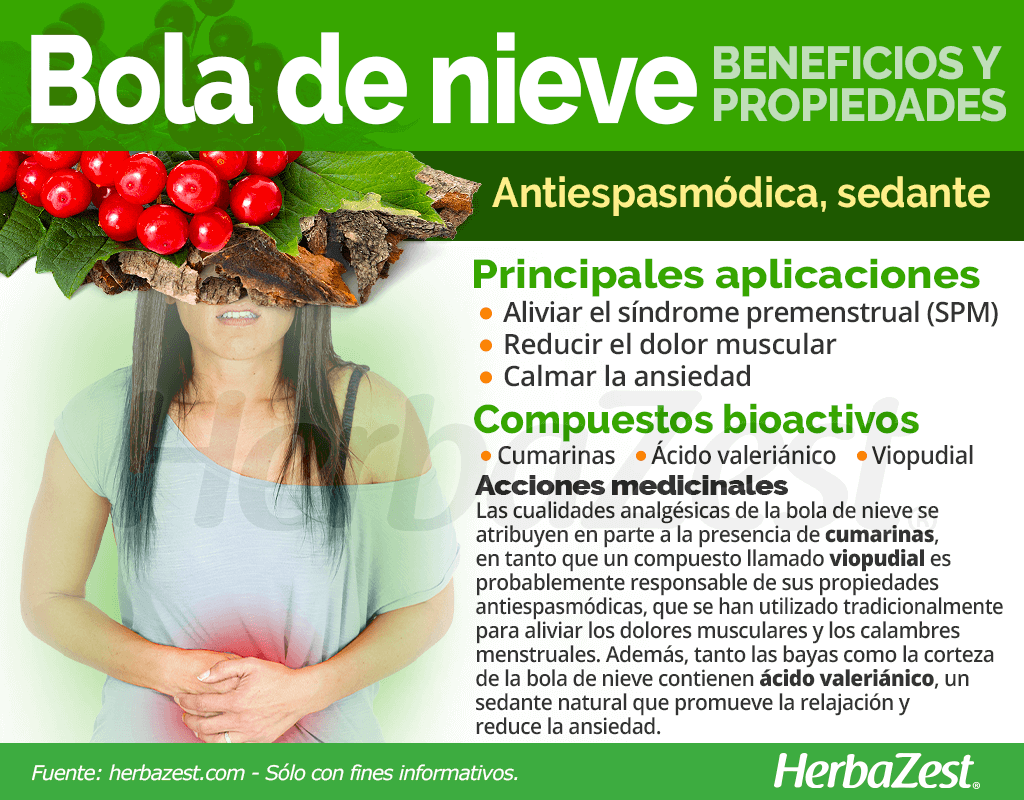 Aliviar el síndrome premenstrual (SPM). Una de las aplicaciones más populares de la bola de nieve es su consumo como tónico uterino, para calmar los dolores menstruales.