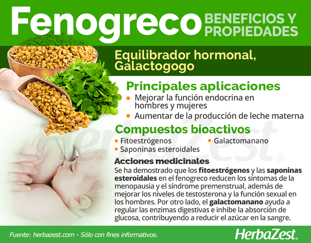 Aumentar de la producción de leche materna. Uno de los más conocidos beneficios del fenogreco es su capacidad para estimular la secreción de leche en mujeres lactantes, y ha sido usado tradicionalmente con este propósito por milenios.