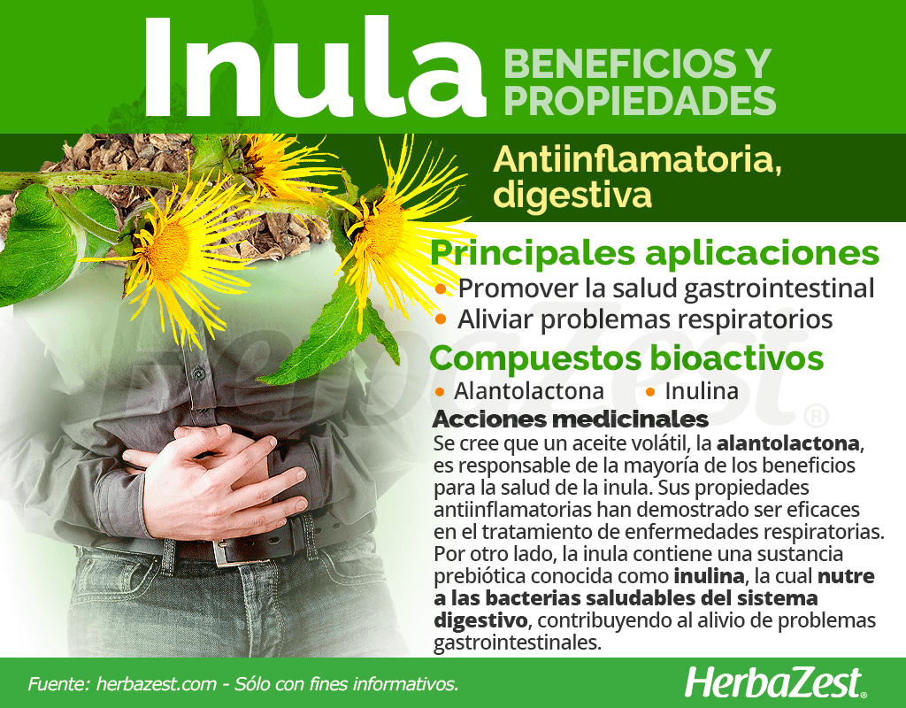 Promover la salud gastrointestinal. La inula estimula el crecimiento de bacterias saludables en el intestino, mejorando así la digestión.