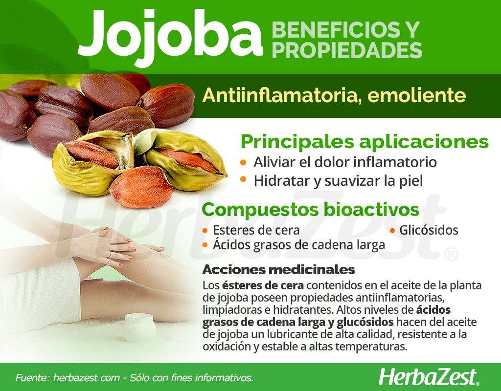 Tratar problemas dermatológicos. La jojoba se ha utilizado tradicionalmente para tratar afecciones de la piel, como erupciones cutáneas.