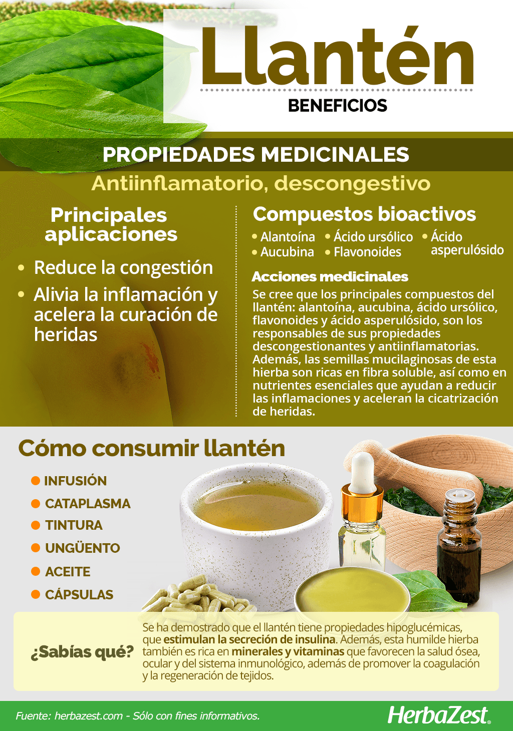 Reducir la congestión. Se cree que el consumo de llantén en forma de infusión puede ayudar a reducir la mucosidad y la inflamación de la garganta.