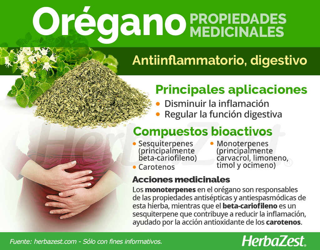 Regular la función digestiva. El orégano es muy popular para aliviar problemas digestivos, como indigestión, flatulencia y dolores estomacales. Estudios científicos sugieren que entre las bondades del orégano se encuentra la capacidad de eliminar bacterias potencialmente dañinas en el tracto digestivo.