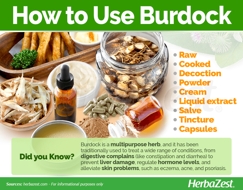 Along with its modern medicinal uses, burdock as long been used in traditional medicinal for numerous purposes, including: