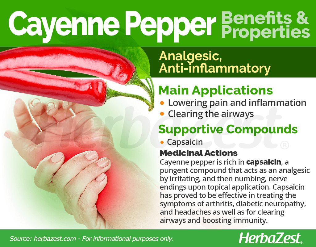 Clearing the airways. Cayenne has been long used as an effective oral treatment for cough, nasal congestion, asthma, and other allergic airway inflammations.