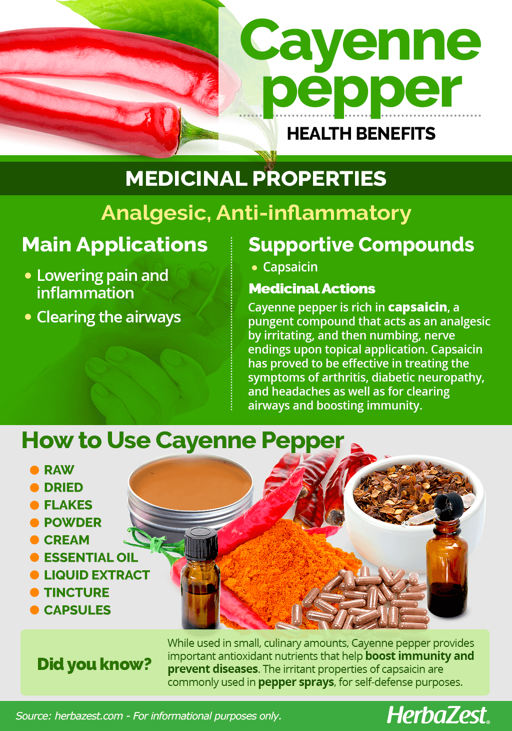 While it has many culinary uses, the most effective way of obtaining cayenne pepper's numerous health benefits is in medicinal forms of consumption, where its properties are more concentrated.