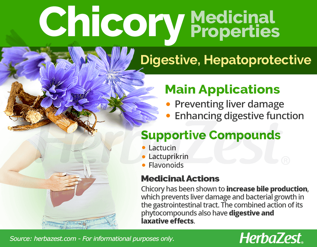 Enhancing digestive function. Chicory may stimulate the production of bile, which impacts the overall digestive system.