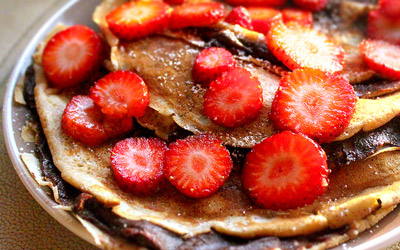 Vegan Maca Crepes with Strawberries and Chocolate Hazelnut Spread - Breakfast
