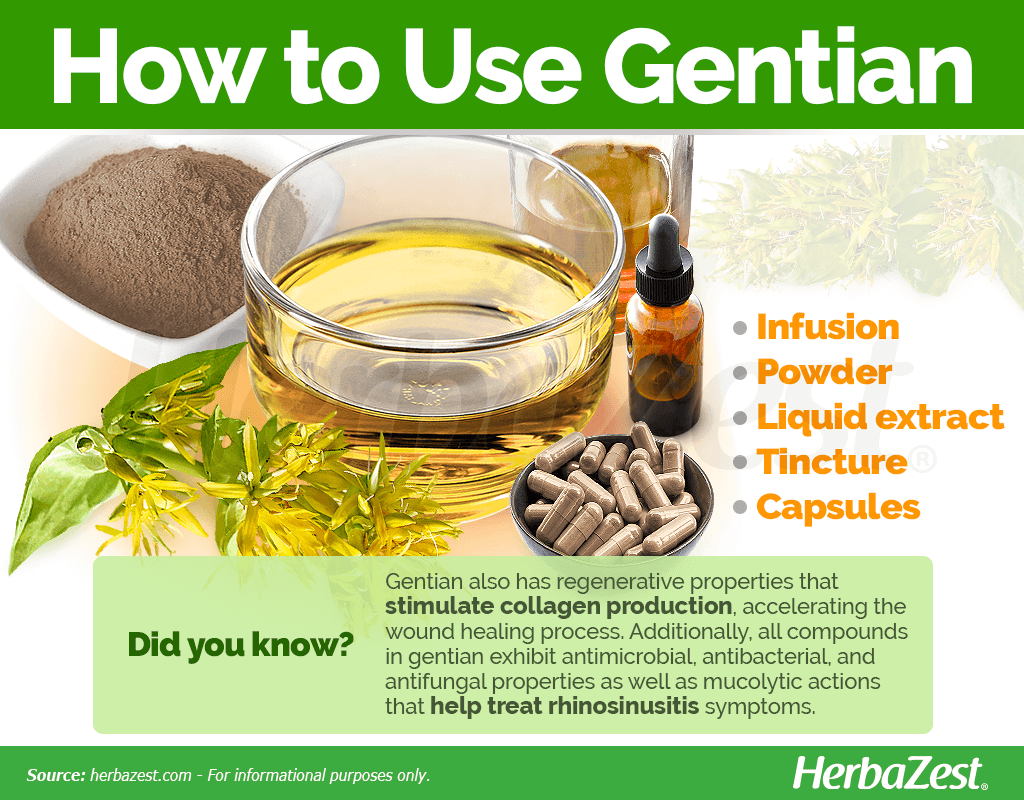 Treating sinus infections. Research shows that taking gentian in combination with other herbs with similar properties can help reduce the symptoms of sinus infections.