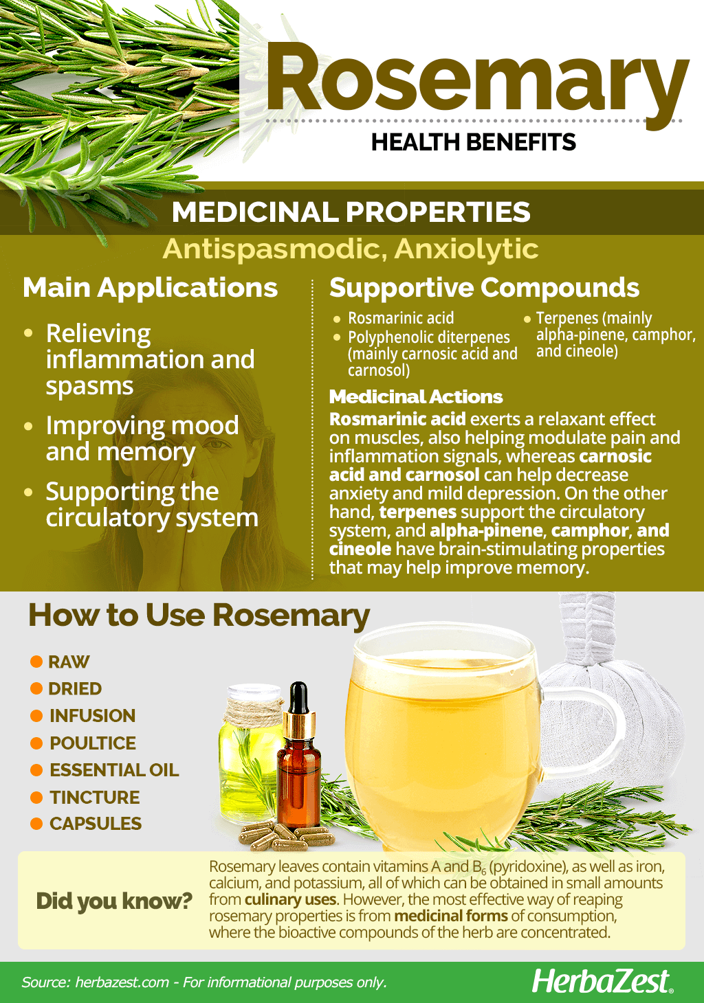 While rosemary's health benefits can be obtained from culinary uses, the most effective way of reaping its properties is from medicinal forms of consumption, where the bioactive compounds of the herb are concentrated.
