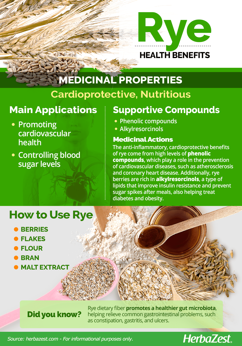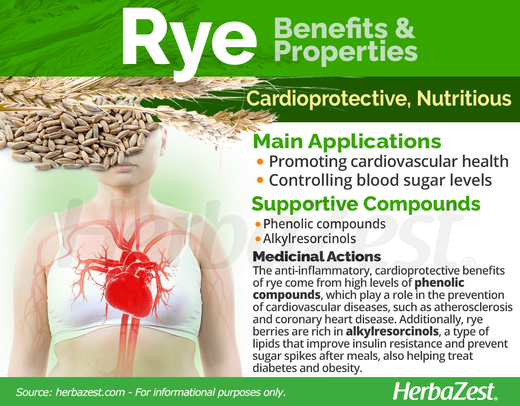 Promoting cardiovascular health. Rye grain is rich in antioxidant and anti-inflammatory compounds that not only help reduce harmful cholesterol levels but also the risk of cardiovascular diseases.