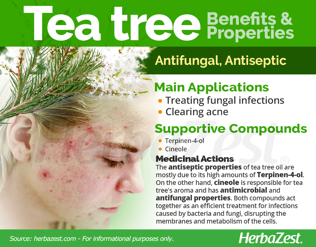 Treating fungal infections. The antifungal properties of tea tree have been used traditionally as a natural cure for athlete's foot and nail infections.