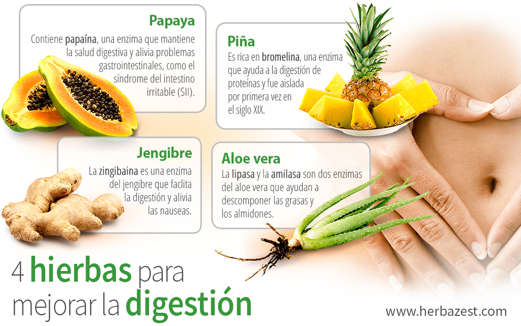 Existe amplia documentación sobre los efectos beneficiosos de esta hierba sobre el sistema digestivo, aunque las investigaciones son menos concluyentes comparadas con las realizadas sobre la papaya. Las gruesas hojas de la planta de aloe vera contienen dos enzimas, lipasa y amilasa, que ayudan a descomponer las grasas y los almidones2.