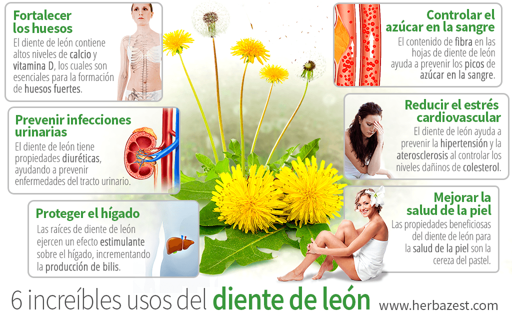 El contenido de fibra y la naturaleza diurética del diente de león facilitan la expulsión de toxinas a través de la orina. Aunque las investigaciones no son concluyentes, se ha sugerido que diente de león podría ayudar a reducir el azúcar en sangre e incluso podría interactuar con la insulina, la molécula responsable de transportar glucosa a las células.