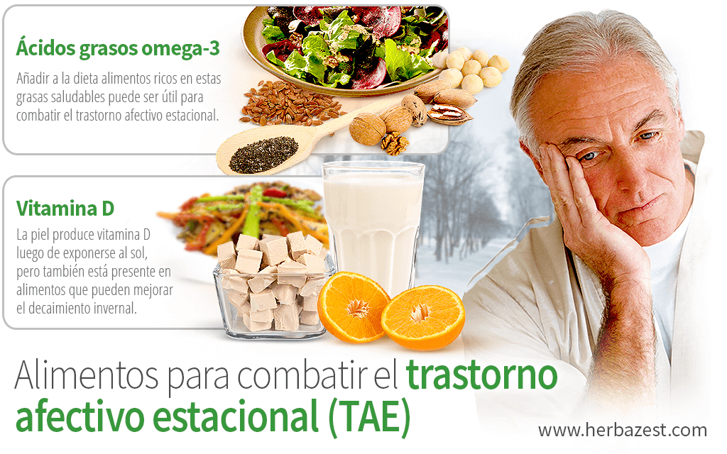 Los síntomas del TAE también pueden reducirse ingiriendo alimentos ricos en vitamina D, según varios estudios. Este nutriente también se conoce como "la vitamina del sol", porque se produce en la piel como consecuencia de la exposición los rayos solares. Dado que el TAE se ha vinculado con una escasa dosis de luz solar, también se le relaciona con una escasez de vitamina D. Por lo tanto, agregar este nutriente esencial a su dieta puede ayudar a mejorar el decaimiento característico del trastorno afectivo estacional.