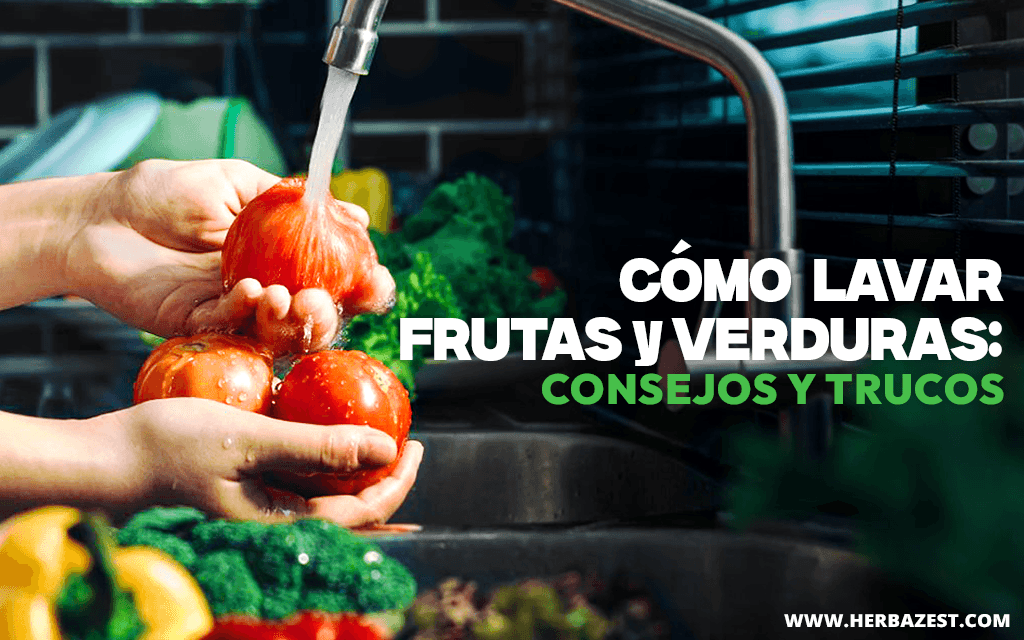 Bicarbonato de sodio. Limpiar frutas y verduras con bicarbonato de sodio es una forma natural y económica de eliminar suciedad, bacterias y pesticidas. Deben remojarse en 4 tazas de agua con 2 cucharaditas de bicarbonato de sodio durante aproximadamente 5 a 10 minutos. Luego, se frotan suavemente para eliminar residuos y se enjuagan muy bien con agua corriente fría. Este método es especialmente eficaz para alimentos con piel suave, como la manzana, la uva, la fresa, el pepino dulce y el tomate.