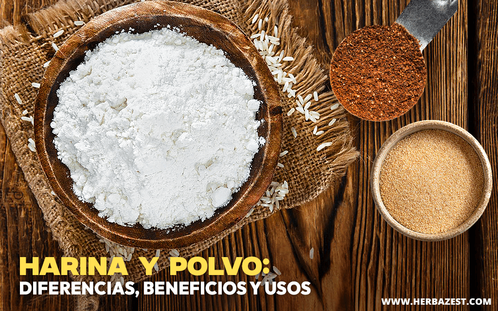 Las harinas tienden a tener una textura fina pero granulada, mientras que los polvos son extremadamente finos (como la maicena y los polvos protéicos) o gruesos (como las especias).