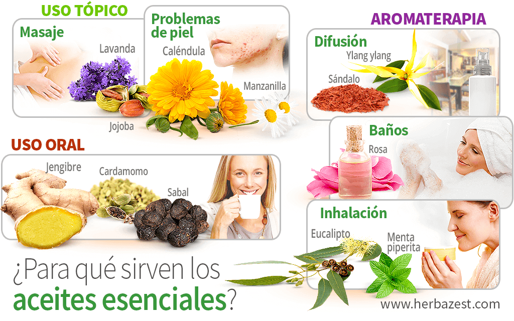 Entre las principales aplicaciones tópicas de los aceites esenciales se encuentran: