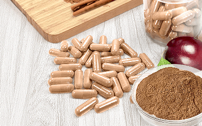 Cápsulas. Esta forma suplementaria puede ayudar a la digestión y disminuir el azúcar en la sangre; sin embargo, contiene un alto contenido de cumarina y su consumo debe ser monitoreado para evitar toxicidad.
