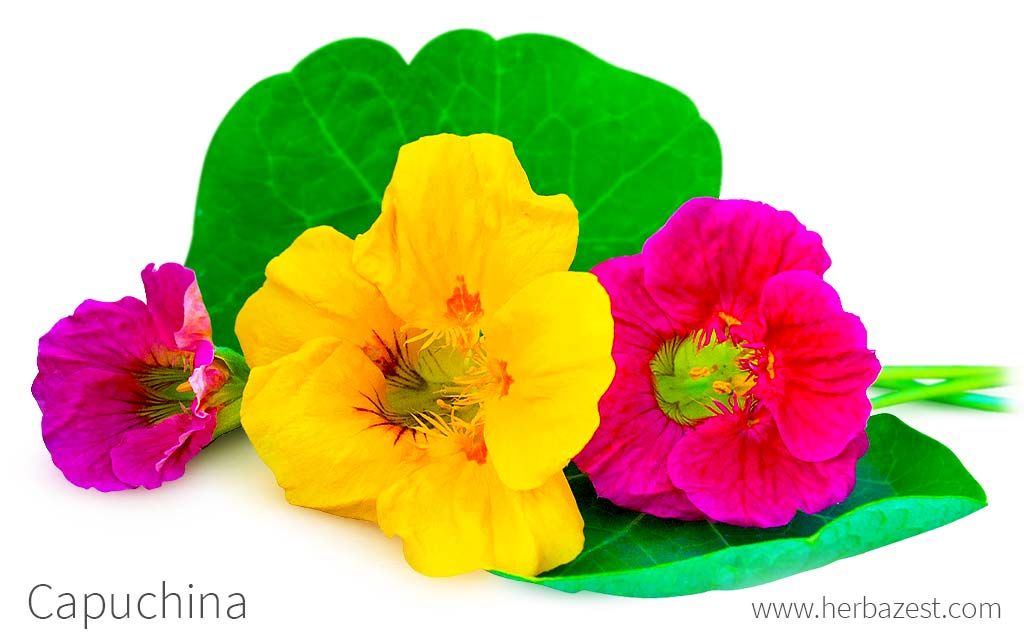 La capuchina, también conocida como mastuerzo, espuela de galán y taco de reina, entre otros otros nombres populares, es una hermosa planta perenne, originaria de las montañas de los Andes, que se extiende por América del Sur. Todas las partes de esta hierba, hojas, flores y semillas, se han utilizado tradicionalmente para desinfectar y curar heridas, así como para tratar problemas urinarios y afecciones respiratorias.