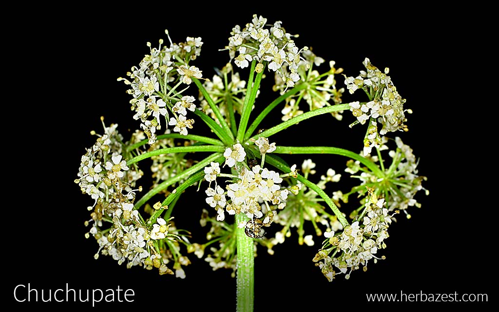 Las pequeñas flores blancas del chuchupate florecen a mediados o finales del verano, generalmente entre mayo y agosto, y se desarrollan en la parte superior del tallo.
