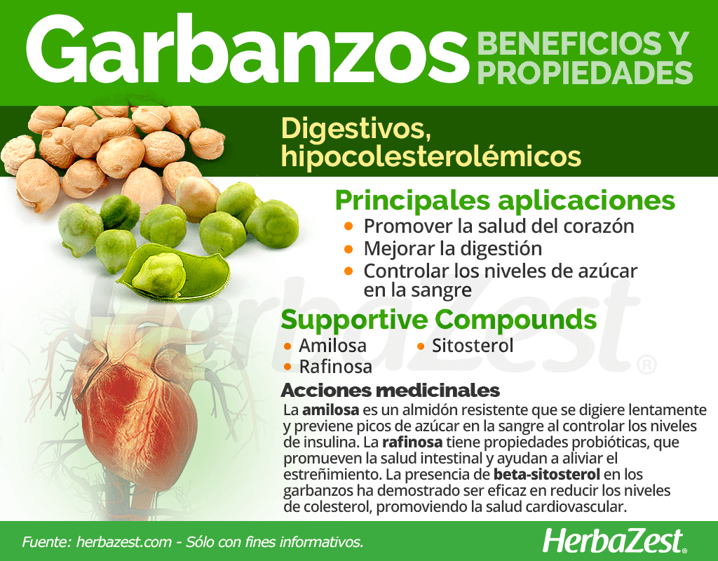 Promover la salud del corazón. Se ha demostrado que los garbanzos contribuyen en la disminución del colesterol, previendo la acumulación de placa en las arterias y reduciendo el riesgo de enfermedades cardiovasculares.