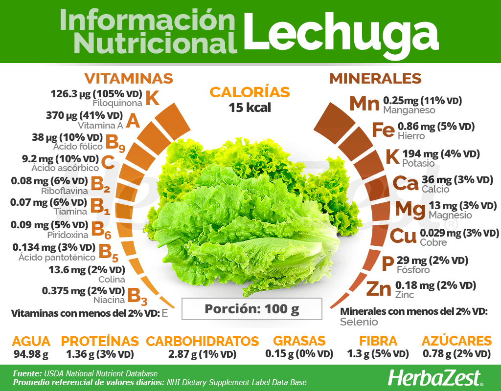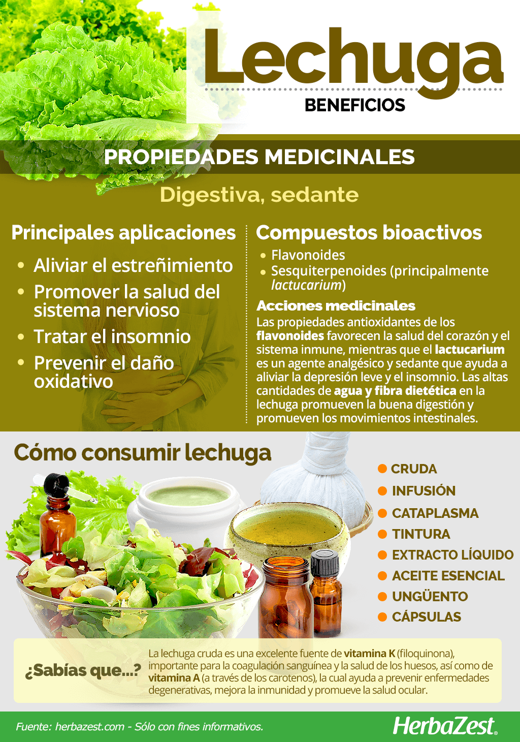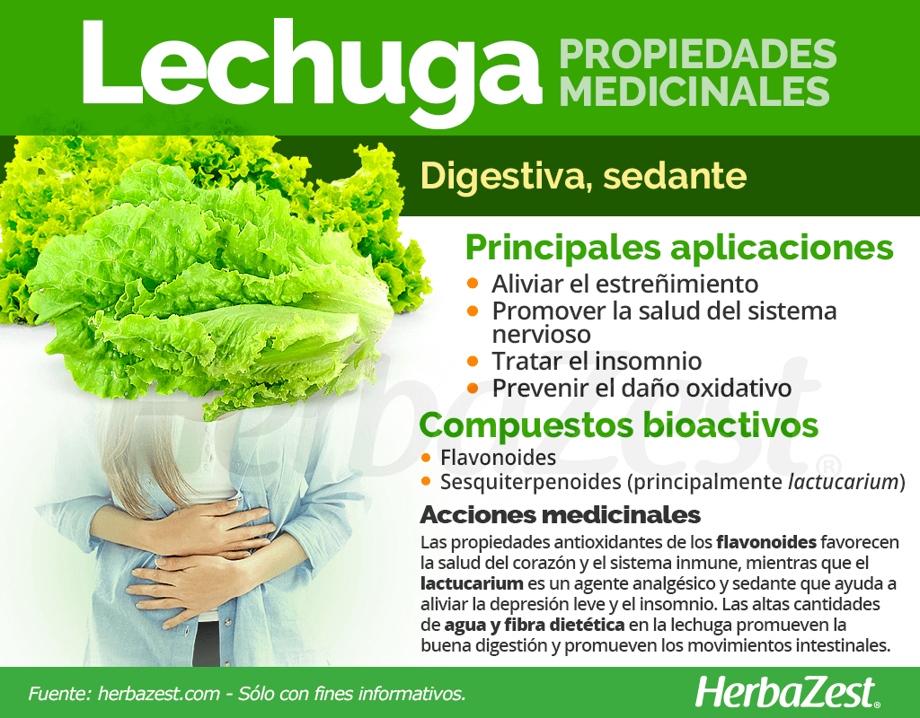 Se sabe que la lechuga posee una amplia variedad de vitaminas y minerales, cuyo consumo es necesario para mantener una buena salud. También tiene un bajo contenido calórico, lo que lo convierte en una opción de comida saludable, especialmente para aquellos con sobrepeso o diabéticos. Las principales propiedades de la lechuga son: