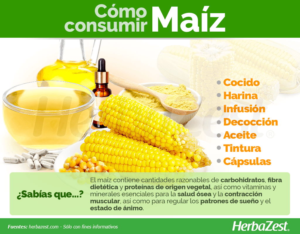 Además de sus múltiples usos culinarios, las propiedades del maíz (principalmente antilíticas y diuréticas) se han aprovechado tradicionalmente para: