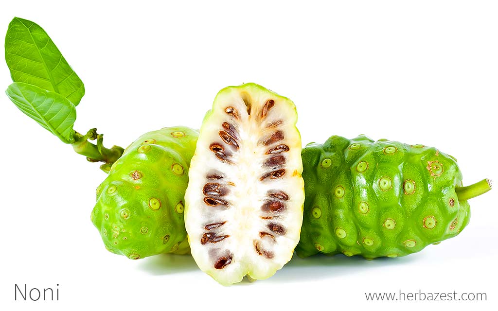 La planta de noni, también llamada mora de la India, es originaria del sudeste de Asia y Micronesia, donde ha sido utilizada por los polinesios durante más de 2000 años como parte de su cocina y medicina tradicional. El noni se popularizó en los años 90 como una fruta "curalotodo"; sin embargo, sus propiedades aún están siendo investigadas y se necesitan más estudios científicos para corroborar las afirmaciones que le han dado fama en todo el mundo.