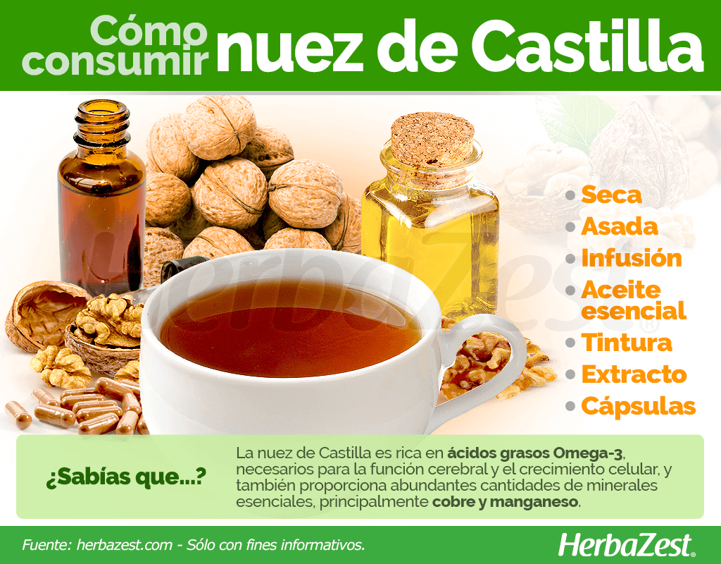 Originaria de la antigua Persia, la nuez de Castilla es el fruto del nogal, y ha sido un componente popular de la dieta humana durante miles de años. Es una de las nueces de árbol más antiguas, y algunas de sus variedades que se remontan a 7000 AEC. Hoy en día, las también llamadas nueces de California se pueden encontrar en casi todo el mundo. Además de proporcionar importantes nutrientes clave, las propiedades de la nuez de nogal la convierten en una valiosa planta medicinal.