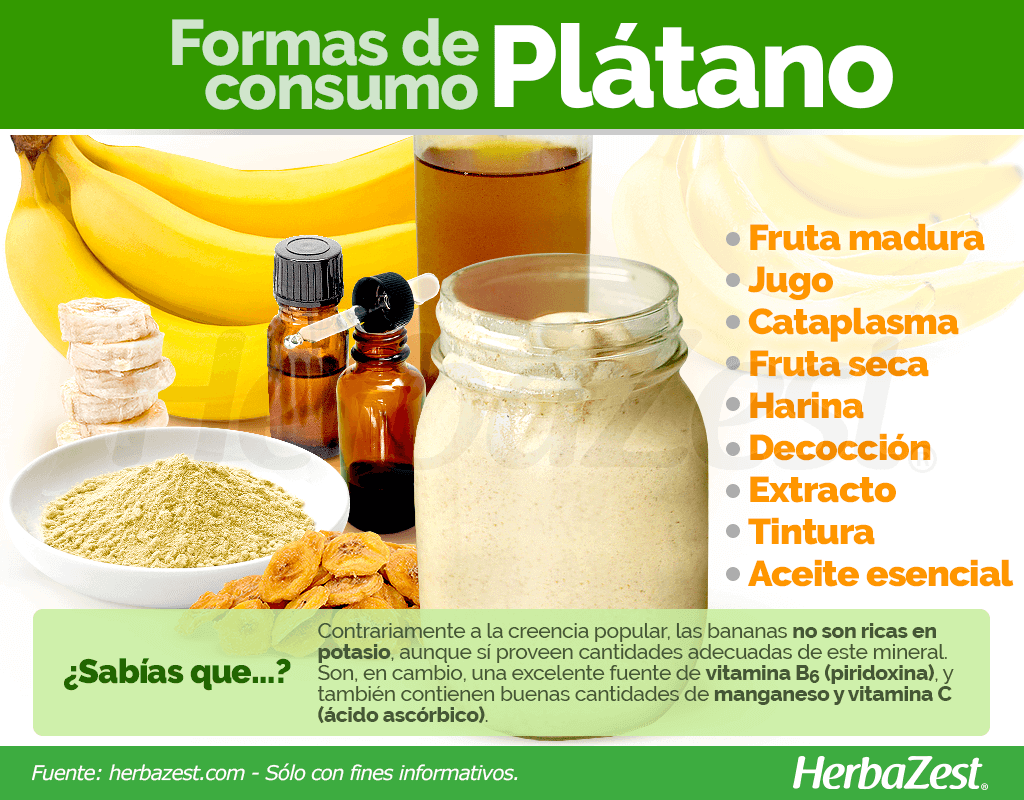 Tintura. Esta preparación, obtenida a partir de la piel de plátano, se puede aplicar externamente a las picaduras de insectos u otras irritaciones de la piel para calmar el dolor y la picazón. También se pueden agregar algunas gotas a una bebida para ayudar a promover una digestión saludable.