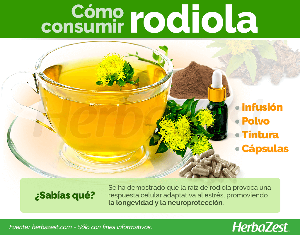 Infusión. El té de rodiola se puede comprar en bolsitas filtrantes o se puede preparar en casa con la raíz de rodiola seca. Generalmente se utiliza para reducir la ansiedad.