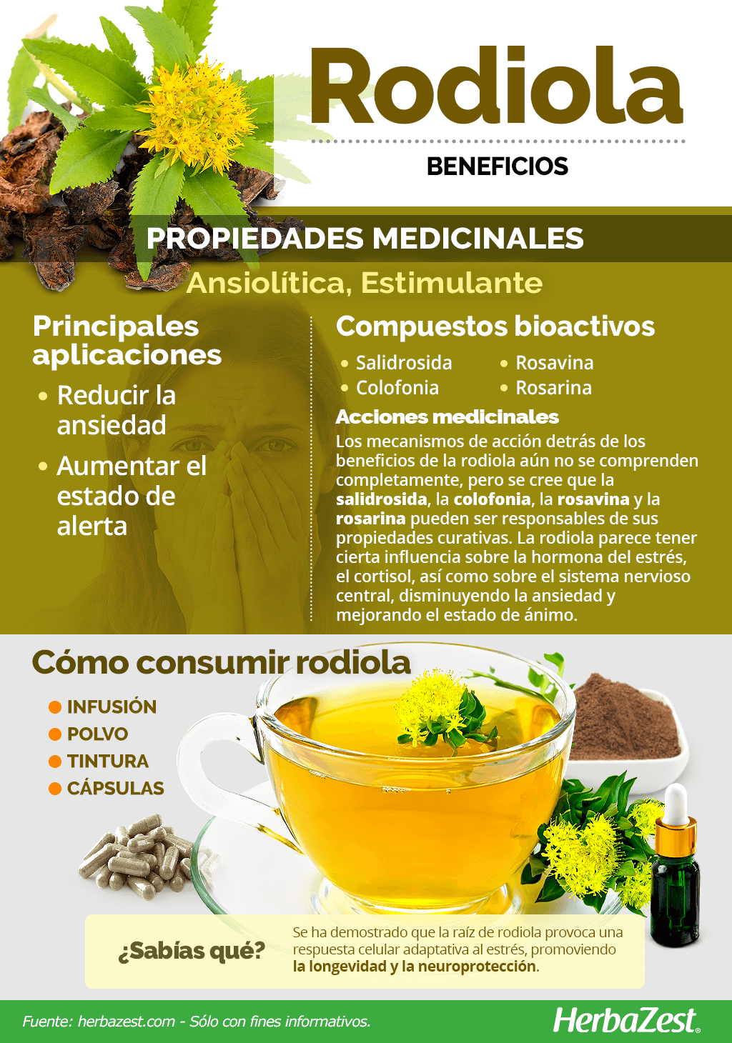 Reducir la ansiedad. La rodiola parece ser útil para inducir una calma que puede ayudar a contrarrestar el estrés, la ansiedad y posiblemente incluso la depresión.