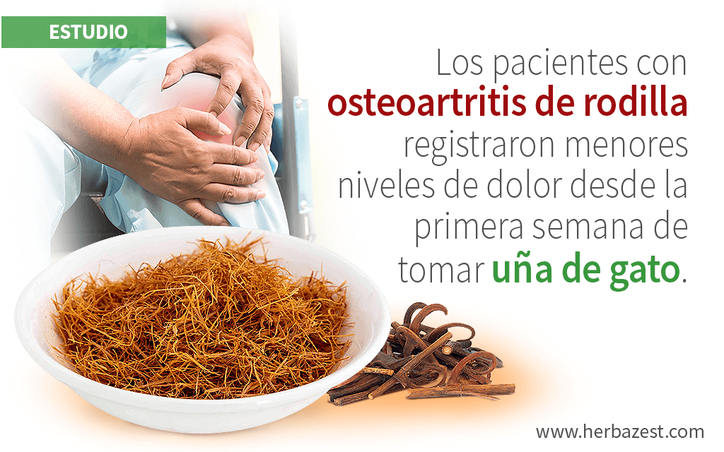 Desde la primera semana de tratamiento, los participantes que tomaron uña de gato registraron niveles de dolor considerablemente más bajos en comparación con los del grupo de control (específicamente, dolor asociado con el ejercicio, puntajes de evaluación médica y del paciente).