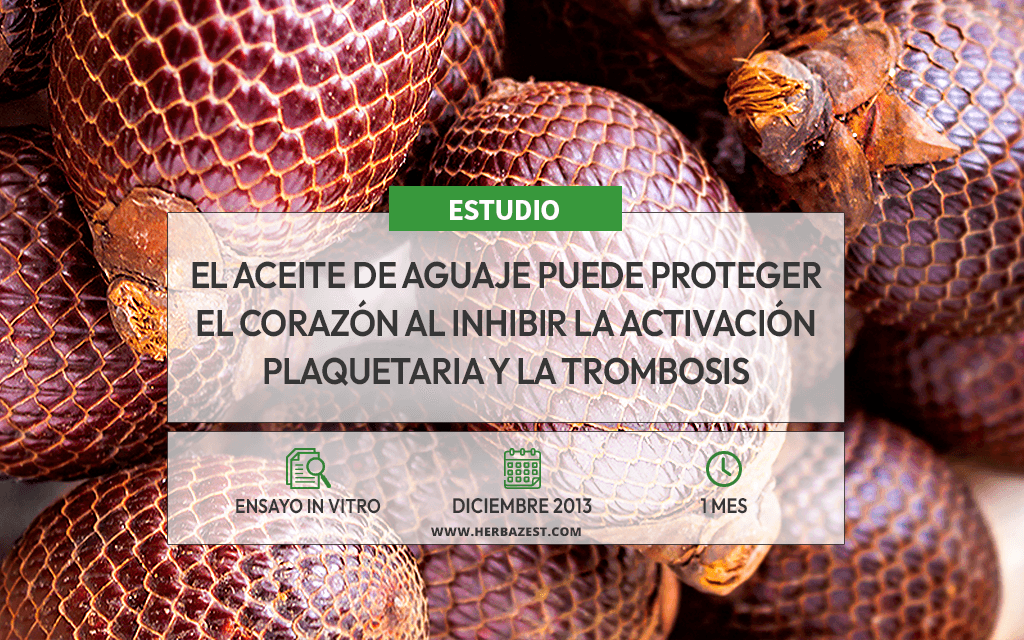 Este ensayo fue realizado por investigadores chilenos de la Universidad de Talca, utilizando el aceite extraído de la cáscara del aguaje. Se determinó el perfil de ácidos grasos del aceite y se obtuvieron plaquetas de muestras de sangre de participantes sanos.