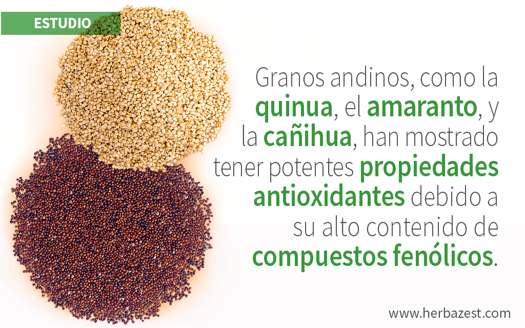 Se encontró que los tres granos andinos analizados contenían fenoles antioxidantes, aunque variaban significativamente en sus tipos y niveles. Los contenidos de ácido fenólico soluble y total fueron más altos en las muestras de quinua que en las de amaranto y cañihua, y fueron comparables a los encontrados en el maíz, el arroz, la cebada y la avena.