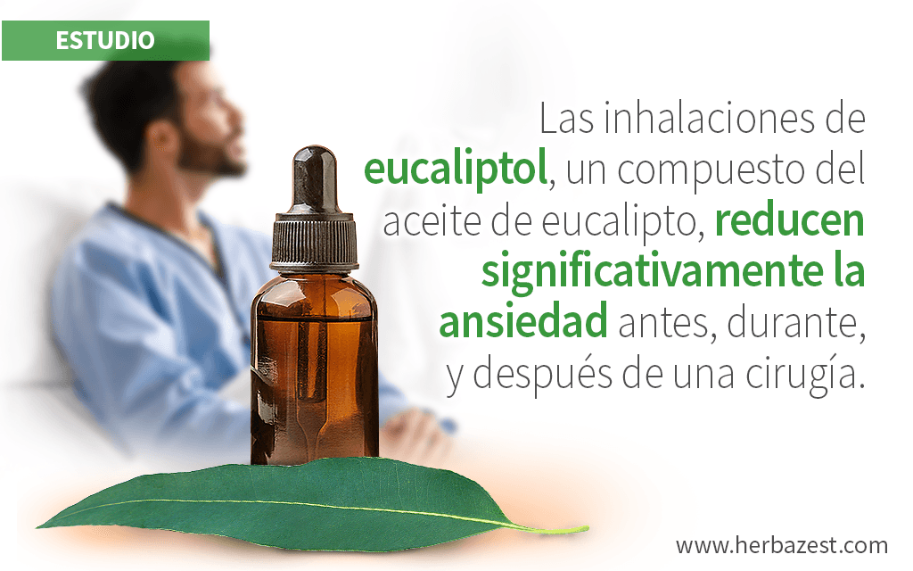 Entre muchas otras aplicaciones terapéuticas, la inhalación de eucaliptol puede ser especialmente beneficiosa para reducir la ansiedad en pacientes que van a ser sometidos a cirugía.