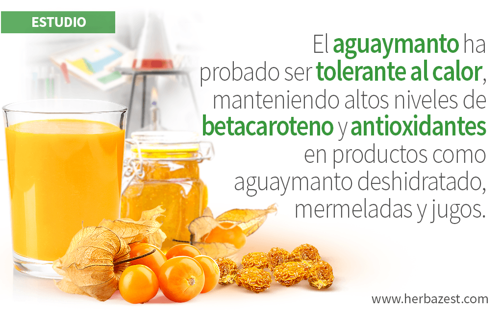 El aguaymanto, también conocido como uchuva, posee un rico perfil nutricional. La baya madura es una buena fuente de betacaroteno (precursor de la vitamina A), es abundante en compuestos fenólicos, que son poderosos antioxidantes, y también aporta cantidades adecuadas de vitamina C (ácido ascórbico).1 Las bayas frescas de aguaymanto no son fáciles de conseguir fuera de sus tierras andinas; en cambio, el aguaymanto deshidratado, así como las mermeladas y los jugos elaborados con estas bayas, con una vida útil más larga, son más fáciles de conseguir en todo el mundo. Este estudio analizó la tolerancia del aguaymanto al calor, con la finalidad de conocer hasta qué punto conserva su perfil nutricional después de ser procesado.