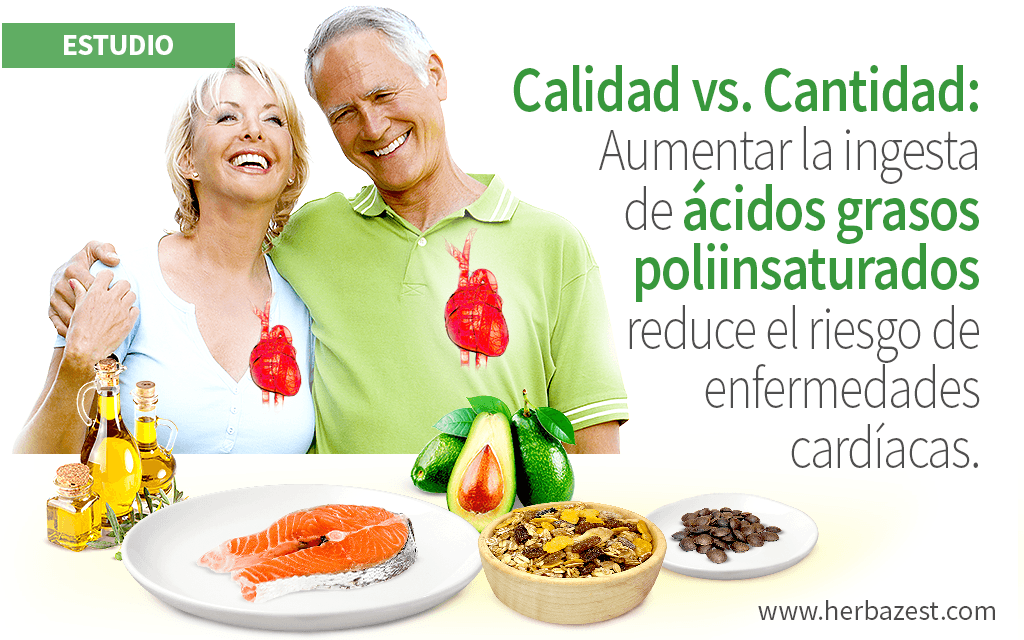Esto significa que algo tan simple como reemplazar las grasas saturadas por ácidos grasos poliinsaturados puede ayudar a reducir el riesgo de enfermedad coronaria. El estudio demostró que reducir las grasas saturadas de la dieta es una medida que por sí sola no disminuye el riesgo de enfermedades cardiovasculares. El factor más importante, el responsable de la reducción del riesgo coronario, fue la presencia de ácidos grasos poliinsaturados como reemplazo. Consumir frutos secos , como nueces; pescados de agua fría, como salmón y atún; y ciertos aceites vegetales, como los aceites de oliva, aguacate o sacha inchi, es una excelentes manera de aumentar la cantidad de ácidos grasos poliinsaturados en la dieta.
