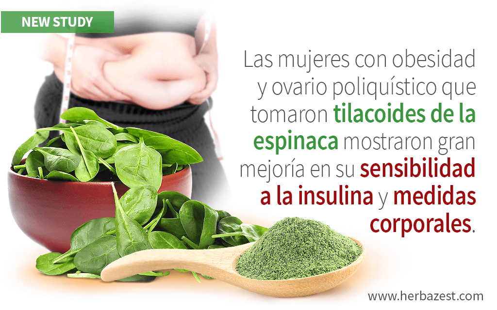 La espinaca contiene membranas fotosintéticas, llamadas tilacoides, las cuales tienen efectos beneficiosos sobre la obesidad y la saciedad, así como sobre los niveles de colesterol y azúcar en la sangre. Para comprender mejor sus posibles aplicaciones medicinales, este estudio evaluó los efectos de los tilacoides en mujeres con obesidad y SOP.