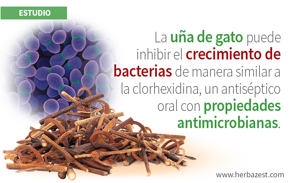 Los investigadores creen que las capacidades antimicrobianas de la uña de gato provienen de su contenido de compuestos fenólicos, glucósidos, taninos, flavonoides y otros compuestos.