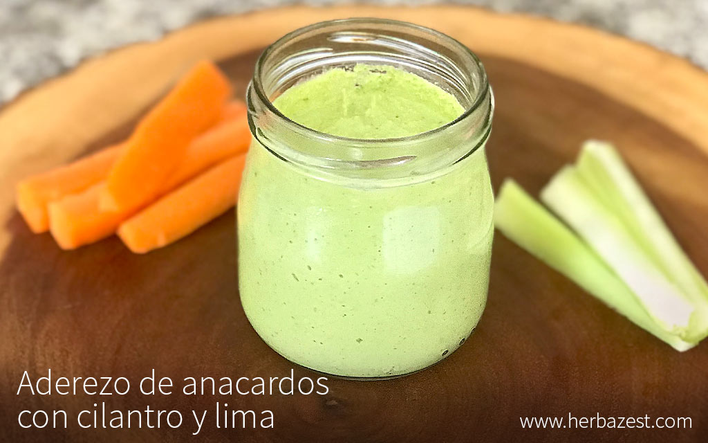 Este aderezo de anacardo con cilantro y lima se prepara en cuestión de minutos y puede darle un toque extra de sabor a las comidas diarias. Al tener un sabor neutro, los anacardos son una excelente base para aderezos y cremas caseras. Esta receta se caracteriza por sus deliciosos matices de cilantro y lima, que combinan muy bien con hamburguesas vegetarianas y ensaladas. Este aderezo cítrico con anacardos y cilantro puede ser lo suficientemente espeso como para consumirlo a modo de crema para untar con verduras frescas.
