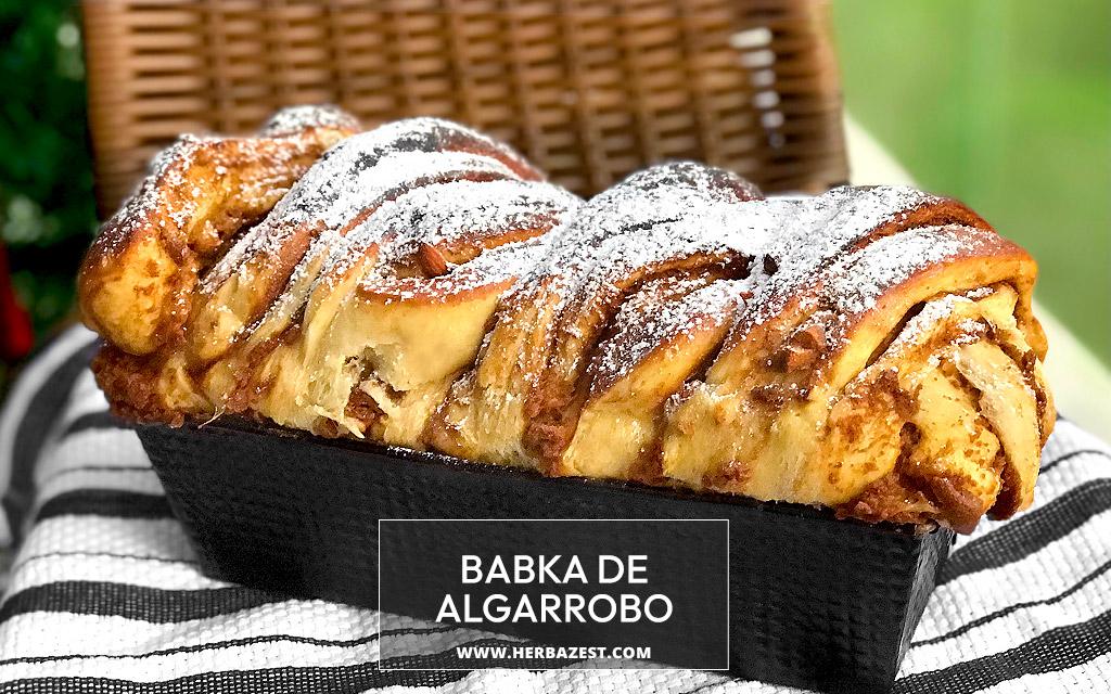 El babka es un delicioso pan dulce con raíces judías. El relleno de esta receta incluye polvo de algarrobo, que complementa maravillosamente la textura suave y esponjosa de este postre horneado. Ligeramente dulce y delicioso, este babka de algarrobo es el acompañamiento perfecto para acompañar el café o el té.