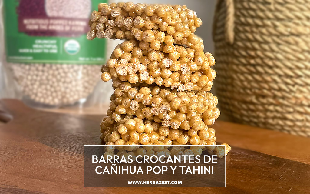 Esta es una saludable versión de un clásico, que reemplaza el arroz inflado por la cañihua. Las barras crocantes de cañihua pop y tahini son crujientes endulzadas naturalmente con miel. La cañihua es nutricionalmente superior al arroz, ya que contiene todos los aminoácidos esenciales, además de aportar fibra y micronutrientes. Las semillas de sésamo, por otro lado, son ricas en grasas saludables y otros nutrientes.