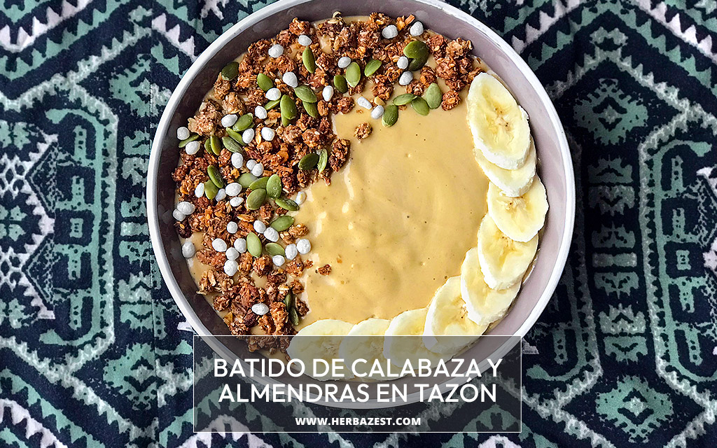 Este batido de calabaza y almendras en tazón es una deliciosa manera de disfrutar los sabores del otoño. Es cremoso y dulce, con el toque clásico de especias de calabaza que a todos les encanta. Además, es abundante en nutrientes esenciales provenientes de la calabaza, los plátanos, las almendras y una saludable cobertura.