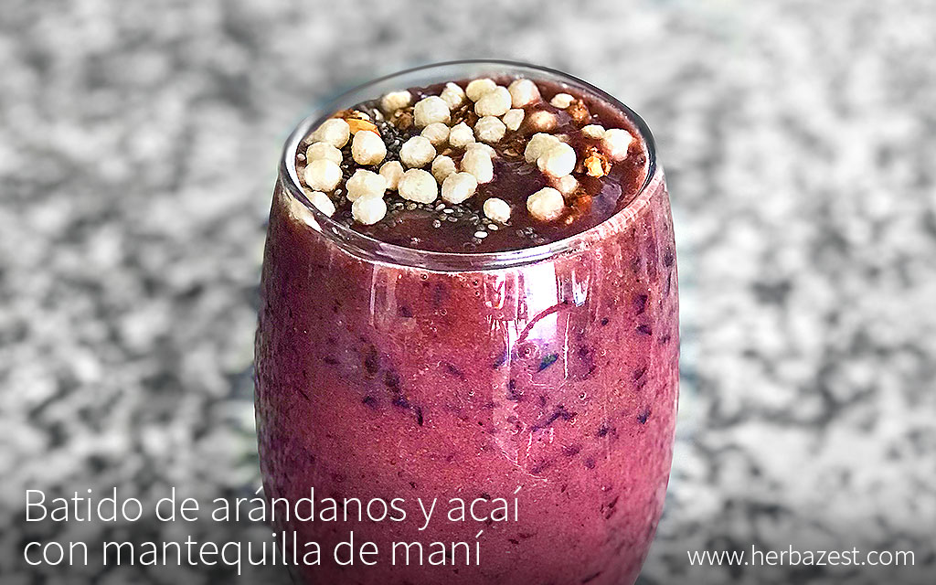 A este batido de arándanos azules con acaí se le puede añadir fruta fresca, semillas de chía, quinua pop, semillas de cacao, granola y ¡Cualquier otro ingrediente saludable!