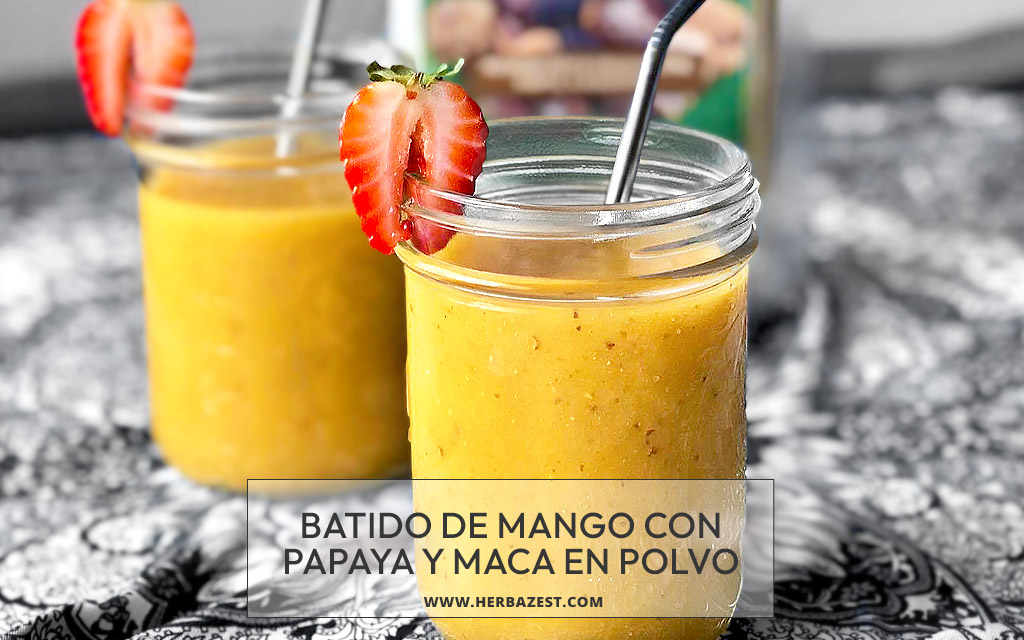 Este batido energizante con mango no solo es cremoso y refrescante, sino también una forma deliciosa de incorporar los compuestos estimulantes de la maca, que aumentan la vitalidad y equilibran las hormonas naturalmente. Al combinar esta raíz andina con los sabores tropicales del mango y la papaya se obtiene una explosión de nutrientes saludables, complementada por los ácidos grasos omega-3 de las semillas de linaza, lo que da como resultado batido tan delicioso como saludable.