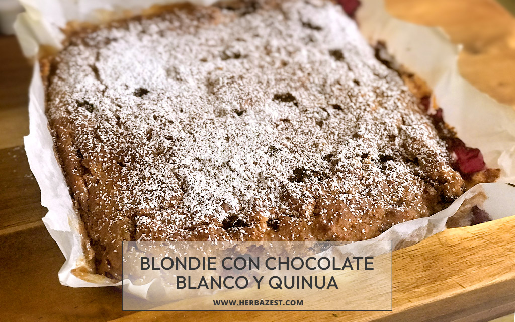 Fácil y rápido, este blondie de chocolate blanco tiene posibilidades de convertirse en un gran favorito. Las harinas de avena y quinua roja están repletas de proteínas y fibra de origen vegetal. Por otro lado, la adición de los arándanos azules y las frambuesas le da humedad a este blondie con harina de quinua, además de enriquecer la receta con su contenido de antioxidantes.