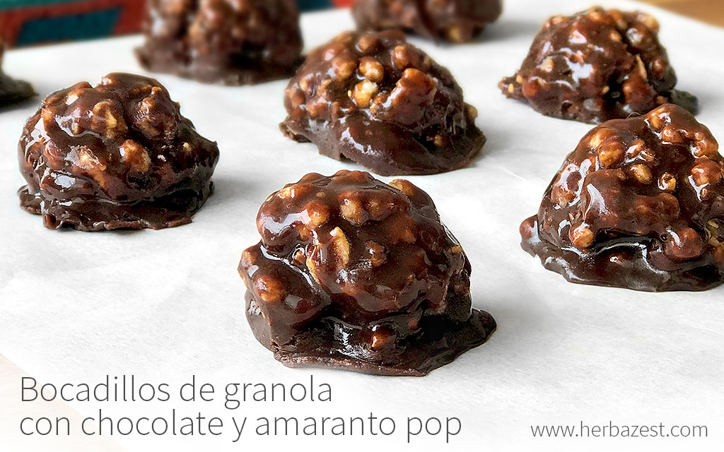 Estos bocadillos de granola con chocolate y amaranto pop serán la delicia de cualquiera que ame las golosinas crujientes. Por si eso fuera poco, están llenos de fibra, grasas y proteínas de amaranto, avena, coco y maní. Estos saludables bocadilllos de granola con chocolate y amaranto se almacenan en el congelador, lo que los hace perfectos para aquellas ocasiones en aparecen los antojos dulces.