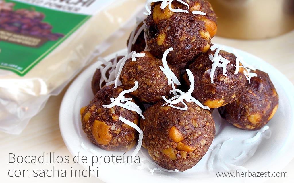 Sencillos de preparar pero saciantes, estos energizantes bocadillos de proteínas pueden consumirse por la mañana o la tarde. Las semillas de sacha inchi han demostrado ser una de las mejores fuentes vegetales de proteína para mantener una masa muscular saludable, mientras que el cacao aumenta la energía, lo que hace de ambos ingredientes un dúo perfecto. La adición de dátiles, repletos de fibra, anacardos, reductores del colesterol, convierte a este refrigerio en una saludable fuente de nutrición. Para darle un toque antioxidante, haga rodar estos bocadillos de proteínas sobre semillas de chía.